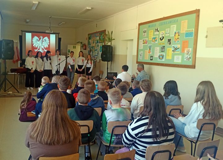 Akademia rozpoczęła się od wprowadzenia sztandaru i odśpiewania hymnu państwowego. Następnie uczniowie klasy 5 zaprezentowali część artystyczną, która w sposób przystępny przybliżyła znaczenie Konstytucji 3 Maja – pierwszej w Europie i drugiej na świecie spisanej ustawy zasadniczej. Wiersze patriotyczne, narracje historyczne oraz scenki ilustrujące wydarzenia z 1791 roku pozwoliły młodszym uczniom lepiej zrozumieć, czym była ta epokowa zmiana dla ówczesnej Rzeczypospolitej.