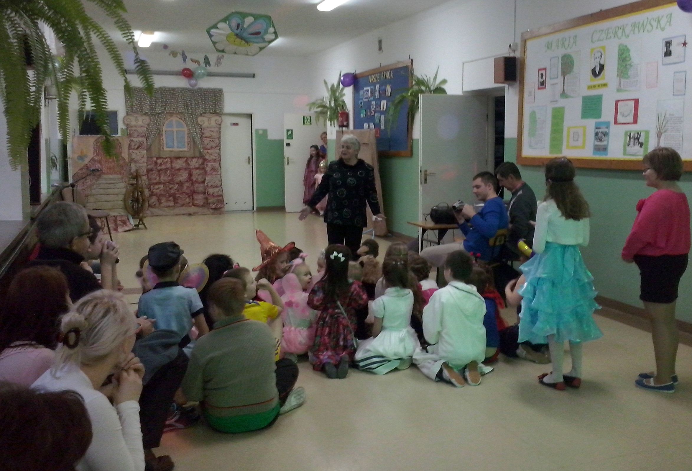 Z wielką niecierpliwością wyczekiwali jej uczniowie, zwłaszcza młodsi, którzy przygotowali ciekawe kostiumy karnawałowe. Wśród radosnych i rozbieganych maluchów można było znaleźć różnorodne, urzekające postaci kojarzone ze światem bajek i magii. Urozmaiceniem jak i atrakcją tegorocznego balu było zaprezentowanie przedstawienia pt. „Śpiąca królewna”, w którym główne role odegrały, chętne mamy uczniów i dzieci naszej szkoły. W asyście p.Zosi Przygórzewskiej, debiutantki mogły zaprezentować swoje aktorskie talenty – a trzeba przyznać, że je posiadają! Zarówno profesjonalna gra, scenografia, jak i kostiumy niewątpliwie odzwierciedliły klimat, lubianej przez dzieci bajki – gratulujemy udanego występu!