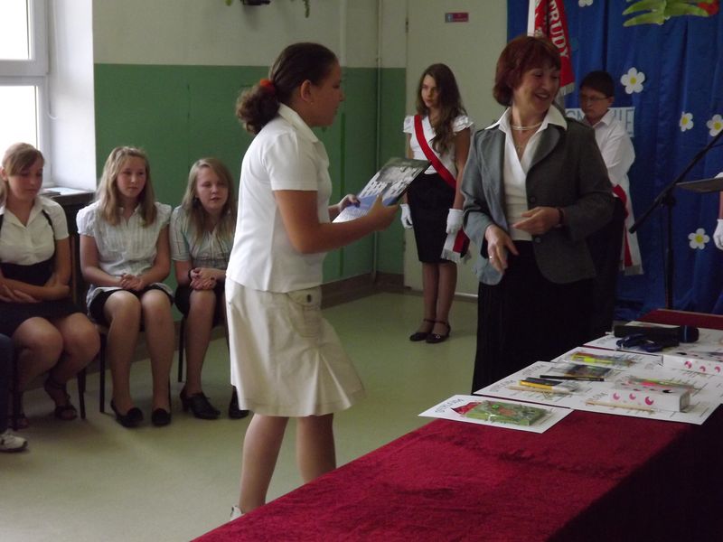 Następnie pani dyrektor podziękowała wszystkim za całoroczną pracę, wręczyła świadectwa z wyróżnieniem oraz nagrody za bardzo dobre wyniki w nauce, wzorowe zachowanie. Gratulowała młodzieży osiągnięć, a rodzicom dziękowała za okazane wsparcie, zaangażowanie i trud włożony w wychowanie dzieci.