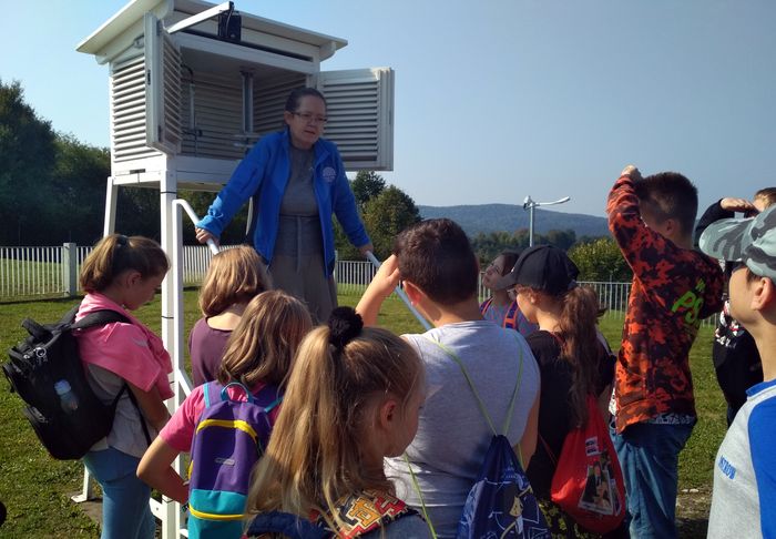 Następnie wszyscy uczestnicy wycieczki udali się do stacji hydrologiczno – meteorologicznej w Lesku, gdzie Pani obserwatorka zdradziła tajniki swojej pracy i opowiedziała o tym jak działają wszystkie urządzenia do pomiaru warunków atmosferycznych. Kolejnym punktem programu było zwiedzanie wystawy w Urzędzie Gminy upamiętniającej 100-lecie Odzyskania przez Polskę Niepodległości.