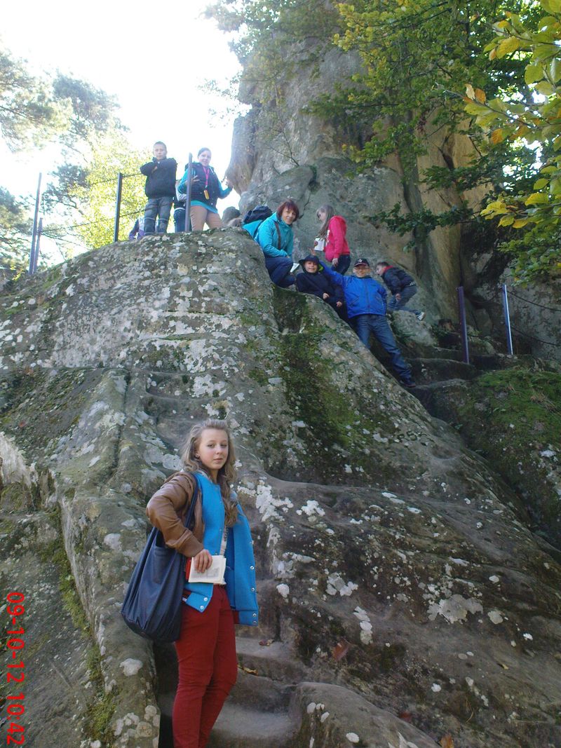 W trasę wyruszyliśmy o godz. 7:45. Pogoda od rana stała pod znakiem zapytania, ale mimo, że było chłodno to i tak mieliśmy dobre humory. Jechaliśmy busem i pierwszym punktem programu był zamek w Odrzykoniu (ruiny), który – jak dowiedzieliśmy się od przewodniczki – należy do najstarszych warowni na terenie Podkarpacia. Poznaliśmy bogatą historię tego miejsca, dowiedzieliśmy jak wyglądało wcześniej i kim byli jego kolejni właściciele. Zamek jest udostępniony do zwiedzania a we wnętrzu jednej z baszt znajduje się niewielkie muzeum.