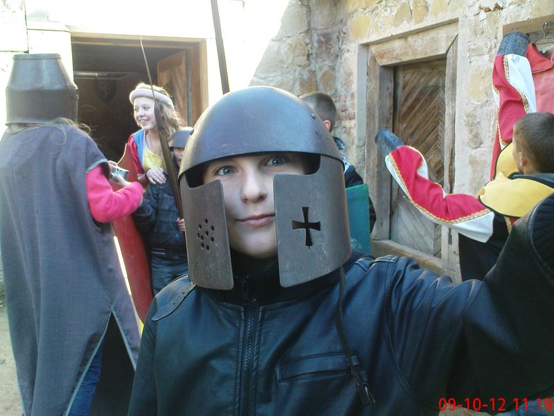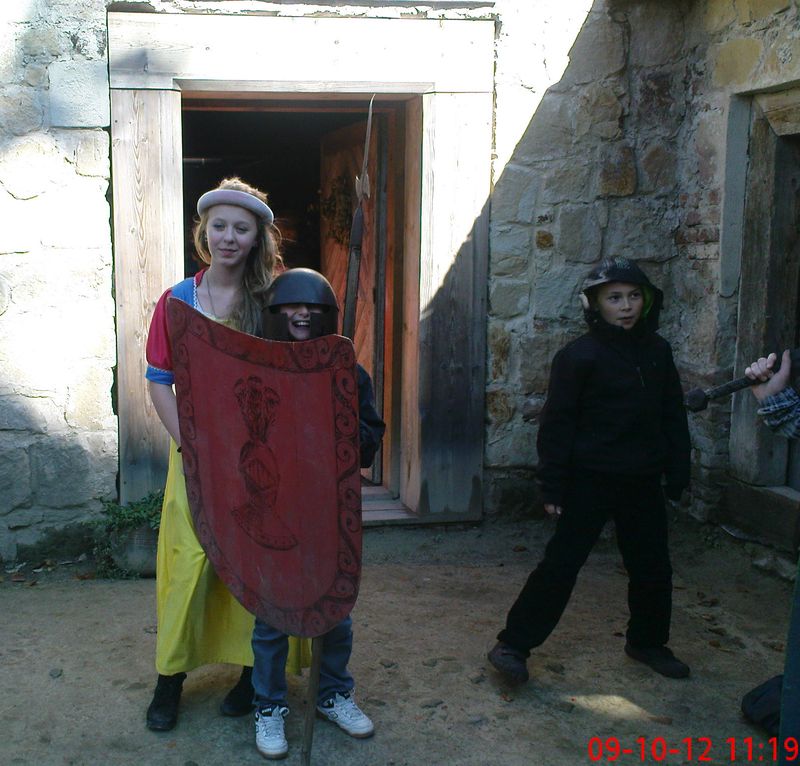Gdy skończyliśmy zwiedzanie i zrobili wiele pamiątkowych zdjęć (m.in. w strojach z ubiegłych epok) to – nieco zmarznięci – poszliśmy zagrzać się przy ognisku i piec kiełbaski.