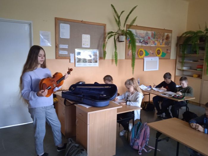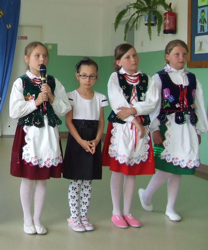 Później występowały młodsze dzieci. Przedszkolaki poprzebierane za leśne zwierzątka śpiewały, tańczyły i recytowały. W swojej inscenizacji pokazały jak pięknie potrafią występować. Następnie kolejno prezentowały się dzieci z „zerówki” oraz klas I – III. Były wiersze, piosenki, gra na akordeonie, występ dwóch „młodych gwiazdorów”, których śpiew wywołał uśmiechy na twarzach gości oraz tańce zarówno grupy młodszej jak i starszej. Całości dopełniła piosenka zaśpiewana przez starszych uczniów „To dzięki Wam”.